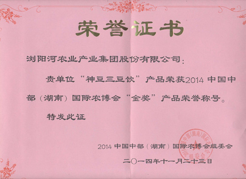祝贺“神豆三豆饮”荣获2014中国中部(湖南)国际农博会“金奖”产品