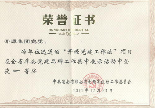 《开源集团党建工作法》荣获“全省非公党建品牌工作集中展示活动”一等奖