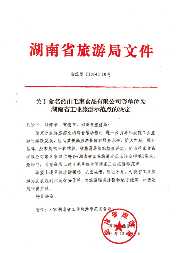 热烈庆祝集团获评“湖南省工农业旅游示范点”