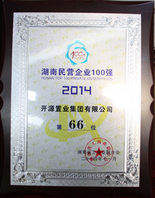 热烈庆祝开源置业集团有限公司当选“2014湖南民营企业100强”、浏阳河农业产业集团股份有限公司当选“2014湖南民营企业农业产业化10强”