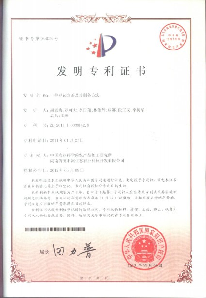 浏阳河农业产业集团再次荣获国家四项专利证书