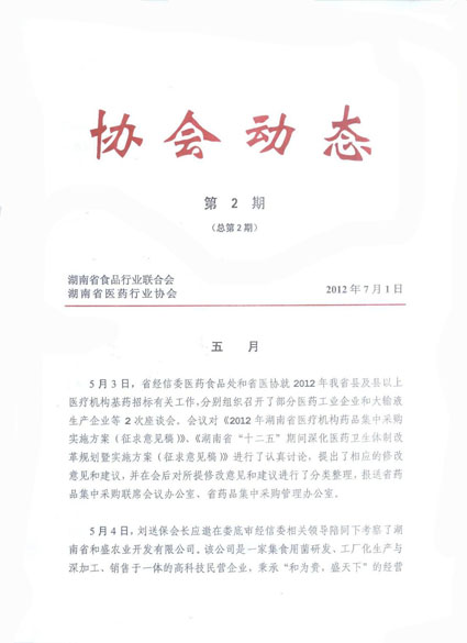 湖南省食品行业联合会《协会动态》报道我集团动态