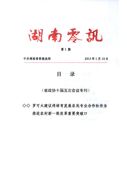 省委统战部《湖南零讯》报导集团罗董事长关于合作社提案