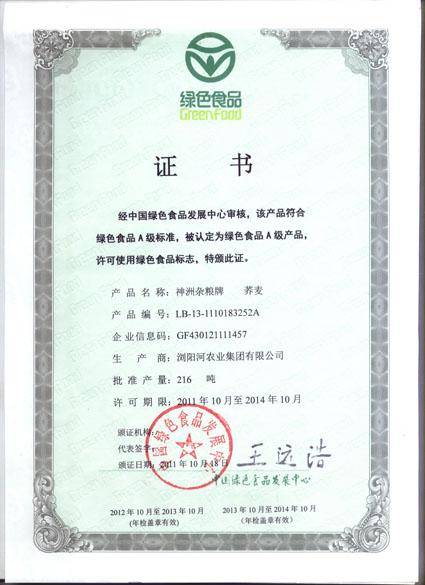 “神洲杂粮”牌绿豆、荞麦被授予“绿色食品A级产品”称号