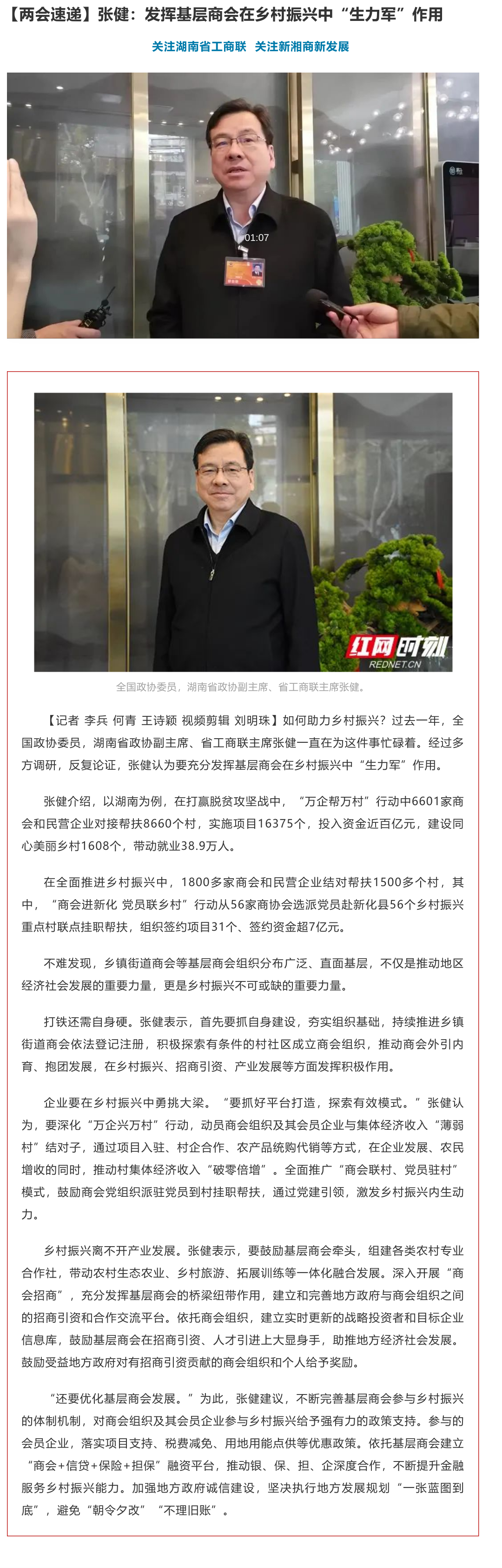 【两会速递】张健:发挥基层商会在乡村振兴中“生力军”作用